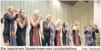 Sang- und Klangvoll Sulzbach. Vor ausverkauftem Haus fand am vergangenen Samstag ein Konzert der besonderen Art statt: Das Frauenchor-Ensemble „Liedschatten“ lud in Zusammenarbeit mit der Stadt Sulzbach zu einem wirklich „sang- und klangvollen“ Abend in die Aula ein. |